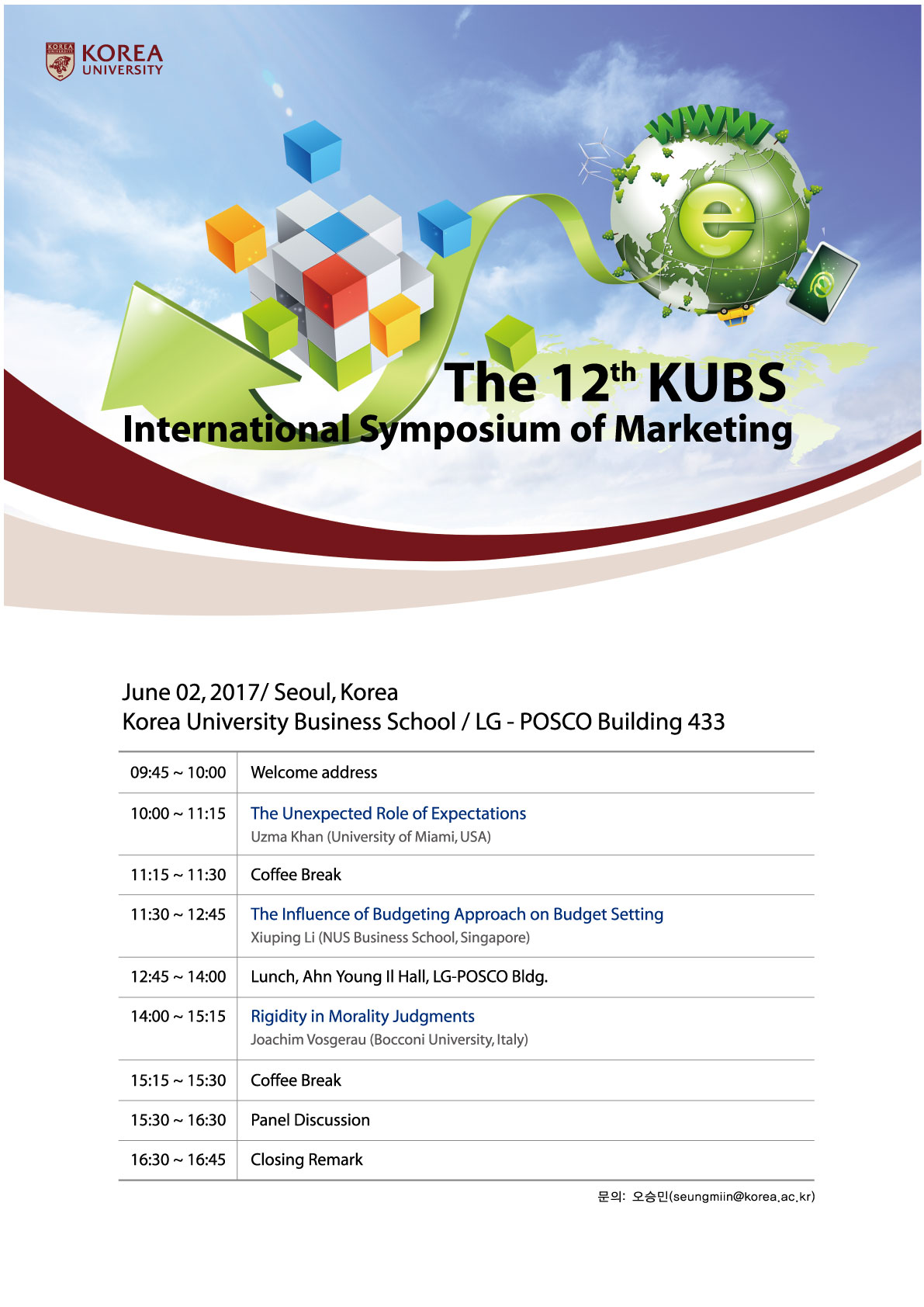 이번 6월2일에 고려대학교 마케팅 연구센터에서 주최하는 유익한 국제 심포지엄이 있어, 회원님들께 알려드립니다. 심포지엄의 내용은 아래를 참고하시고, 관련하여 궁금한 사항 있으시면 담당자 오승민 석사(seungmiin@korea.ac.kr)에게 문의하시면 됩니다. <고려대학교 마케팅 연구센터 주최 국제 심포지엄>