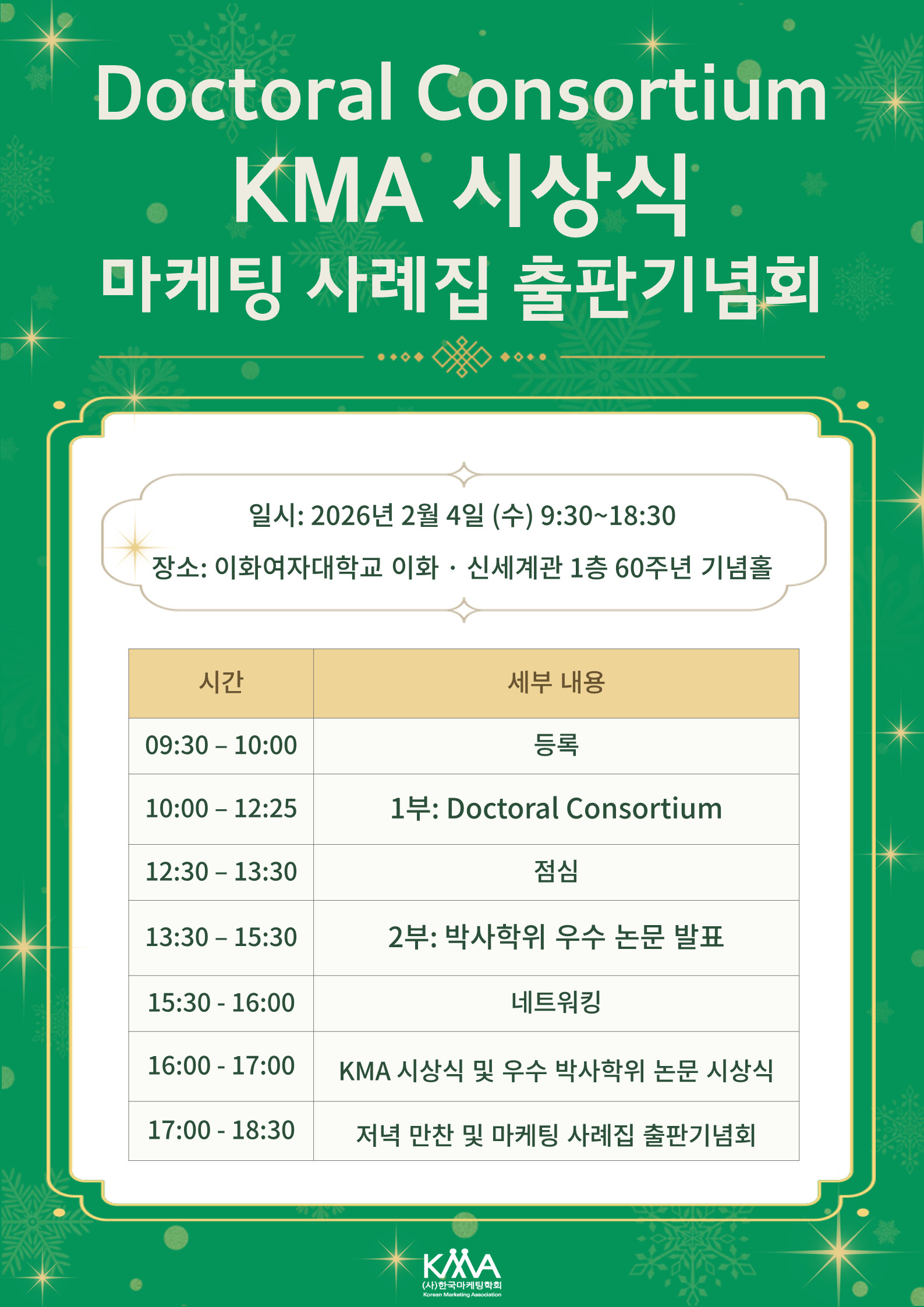 Doctoral Consortium, 박사학위 우수 논문상 및 KMA 시상식이 지난 2월 4일 이화·신세계관에서 140여명의 참석자들과 함께 성황리에 개최되었습니다.